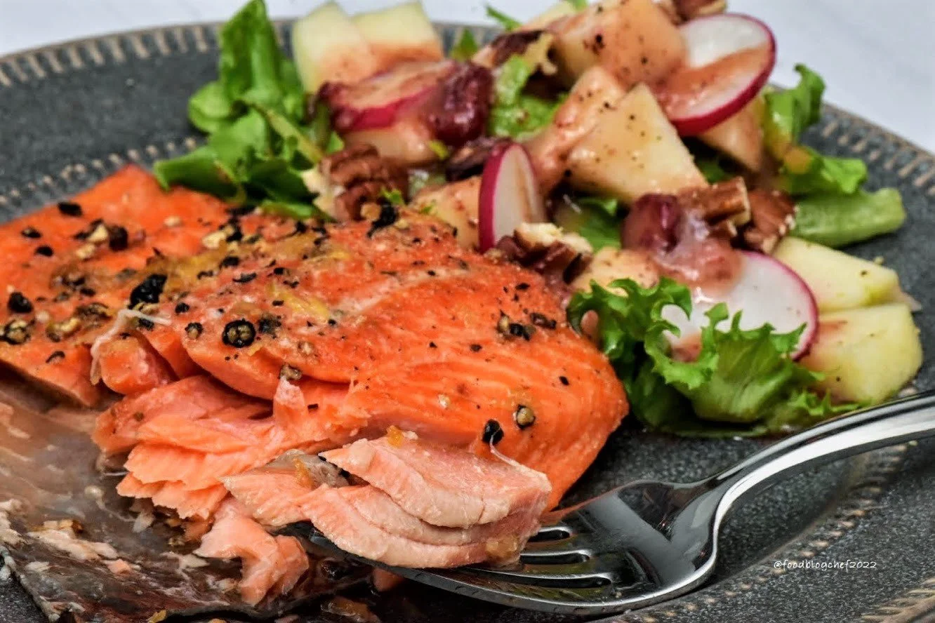 Here’s a variation on the Miso Marinated Cod recipe on this site inspired by Japanese chef, Matsuhisa Nobuyuki, known for his fusion cuisine blending traditional Japanese dishes with Peruvian ingredients. My favorite salmon is Faroe Islands Salmon, but any fresh salmon will do. Serve with a salad of arugula, lettuce and sliced pears dressed with Japanese Salad Dressing. It also pairs well with sauteed rainbow chard, spinach, or kale. Enjoy!