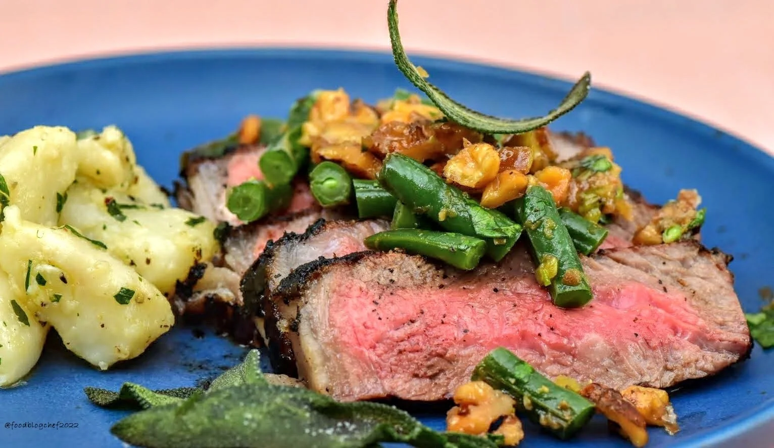 3. While the beans are roasting, make your gremolata. Chop each ingredient and add to a medium-sized bowl. Start with the walnuts, then the dates, cilantro, scallions, ginger, garlic, and lime zest. Lastly, add the sesame oil, lime juice, salt, and pepper flakes if using. Place the green beans on a plate, then sprinkle the gremolata on top. Enjoy!