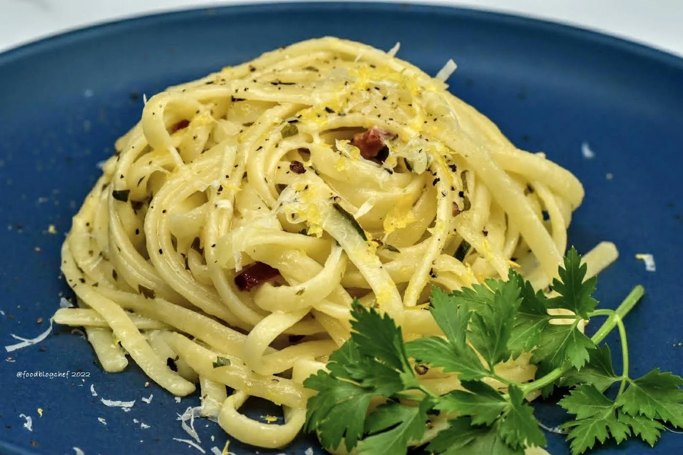 1. Cook the pasta for half the time in the directions; use less water than you normally would so the pasta water is more starchy than usual.