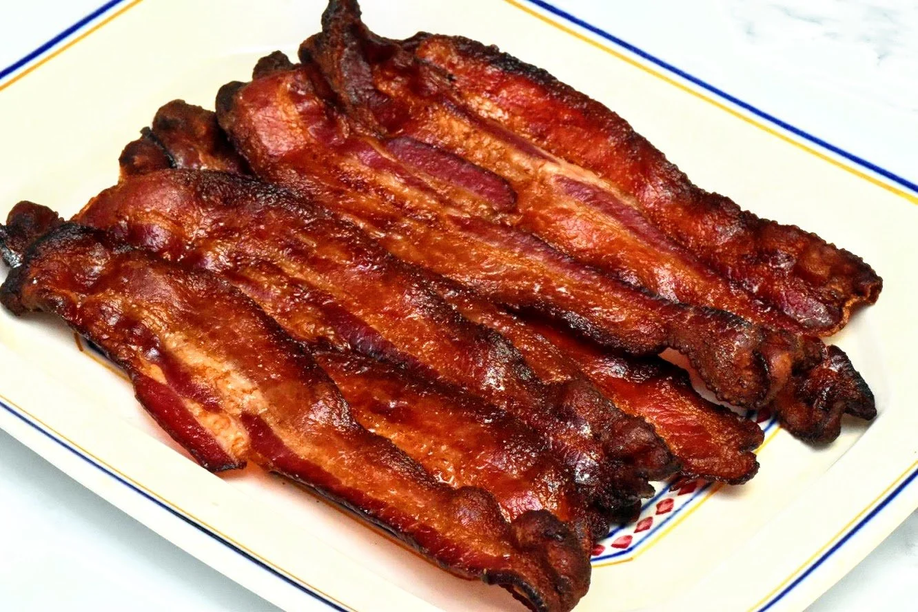 Preheat the oven to 400 F. Line a sheet pan with tin foil; place the bacon slices on a rack on the sheet pan. Cook for 15 minutes and turn the bacon; cook for another 15 minutes for crispy bacon. Remove the bacon slices to a paper towel and set aside.