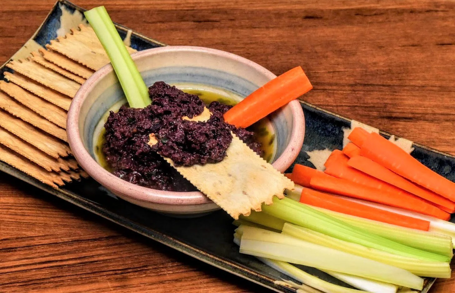 3. Serve the olive spread on toasted baguette slices, crackers, or with fresh crudités.